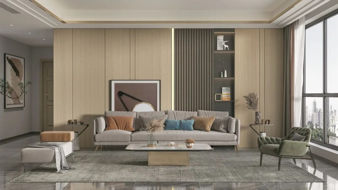 空间的塑造与情感的表达息息相关,每个空间都在材质上有着微妙变化,但也同时在视觉上保持整体调性的一致,时间在这里积累下来的宁静,更容易成长为自身的底蕴与底气。融合现代简约的法式线条通过多材质的巧妙碰撞,在空间中追求美学平衡。低饱和度的配色,结合各种元素的运用,赋予空间一种韵律感,体现了舒适悠闲之情。